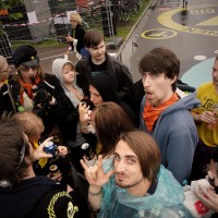 Men den lyckan var inte långvarig. Efter ca en timma mötte jag dem på nytt och de omringade mig helt och hållet i en smal gränd – bland trattar och tvättsvampar. Det blev en intervju på några minuter där de började att fråga om jag ofta handlar trattar, vilket ledde vidare till diskussion om min frisyr, som ledde till hårdrock, som ledde vidare till – ja, jag vet knappt vad!