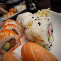 På vägen hemåt stannade jag och hälsade på moster i Mölndal en sväng. Det var trevligt och jag fick kaffe med god rabarberpaj! På kvällen blev det ett stycke sushihäng med herr M.